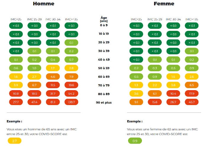À noter que le site ne tient pas compte des antécédents de maladies chroniques (maladies cardiovasculaires, accidents vasculaires cérébraux, maladies rénales, cancers, diabète, maladies respiratoires, immunodépression…), ni grossesse en cours.