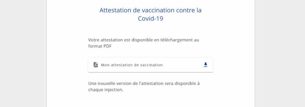 L’attestation pass sanitaire européen est alors proposé en téléchargement au format PDF.