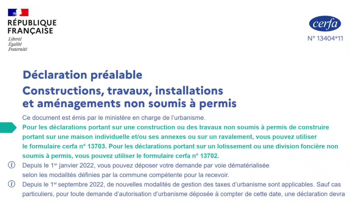 Votre avis sur l’utilisation du CERFA 13404 et la procédure une déclaration préalable de travaux (DP) en France