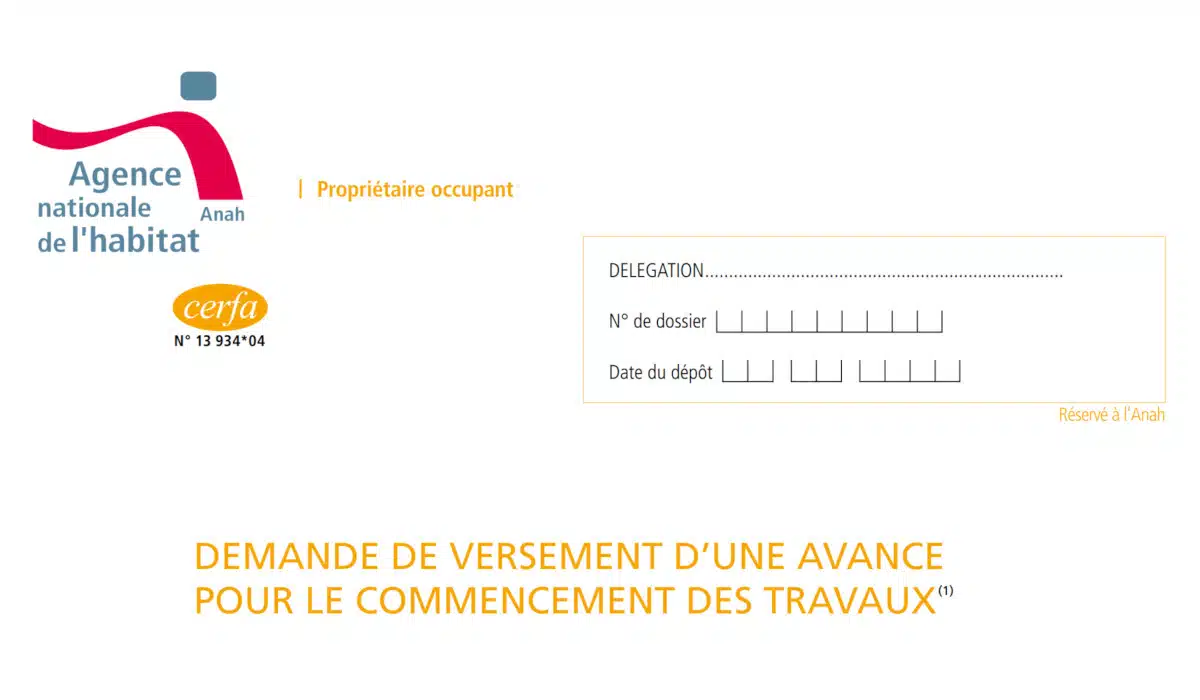 Télécharger le formulaire Cerfa 13934*04 pour une demande d’avance sur travaux à l’Anah :