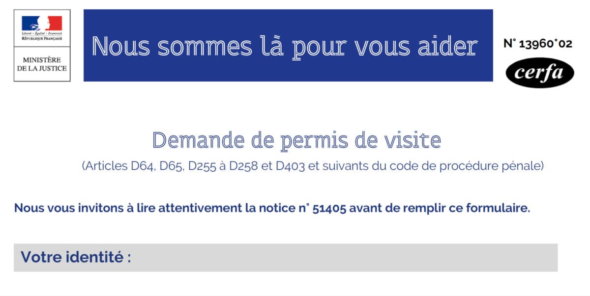 CERFA 13960*02 : formulaire pour rendre visite à une personne détenue en prison