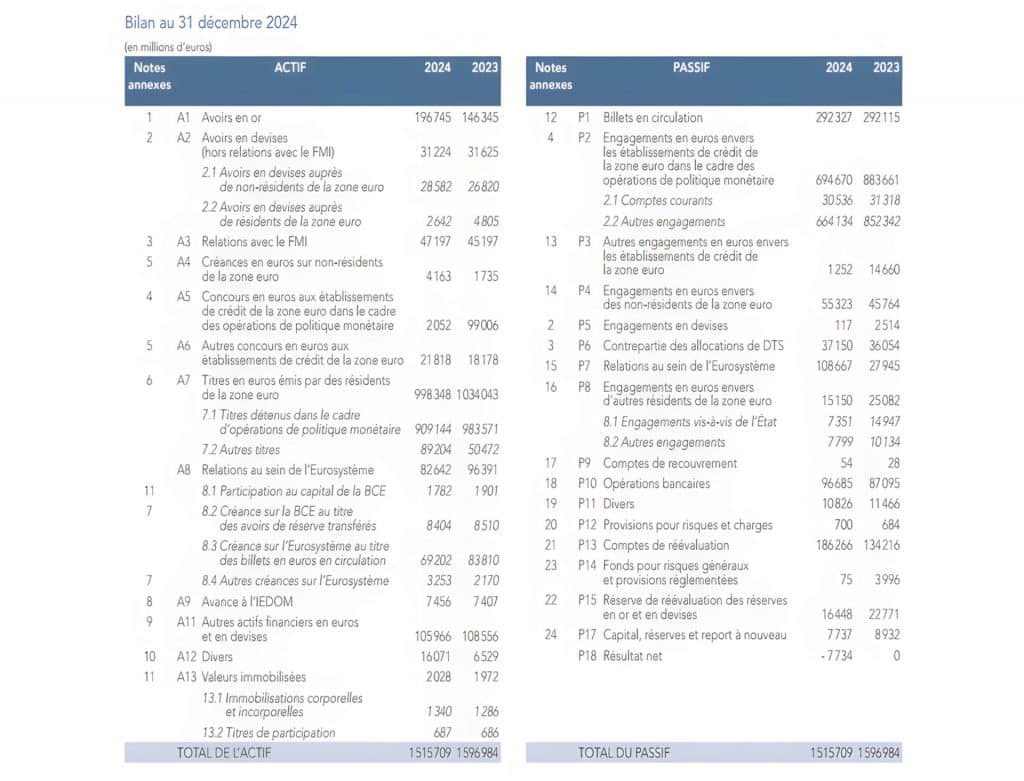 Mais, au-delà de la perte de 7,7 milliards d’euros et des éléments de langage qui l’entourent, c’est une impression de profonde opacité que j’ai ressentie à la lecture des comptes annuels. Je vous livre ci-dessous mon analyse sur la situation financière de la Banque de France, notamment sur l’état réel des fonds propres.
