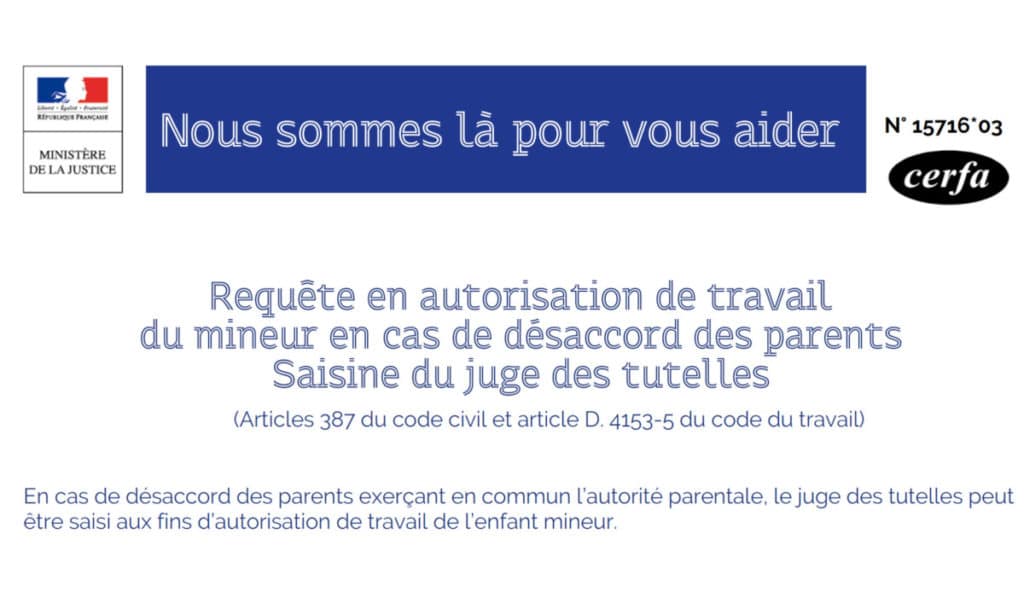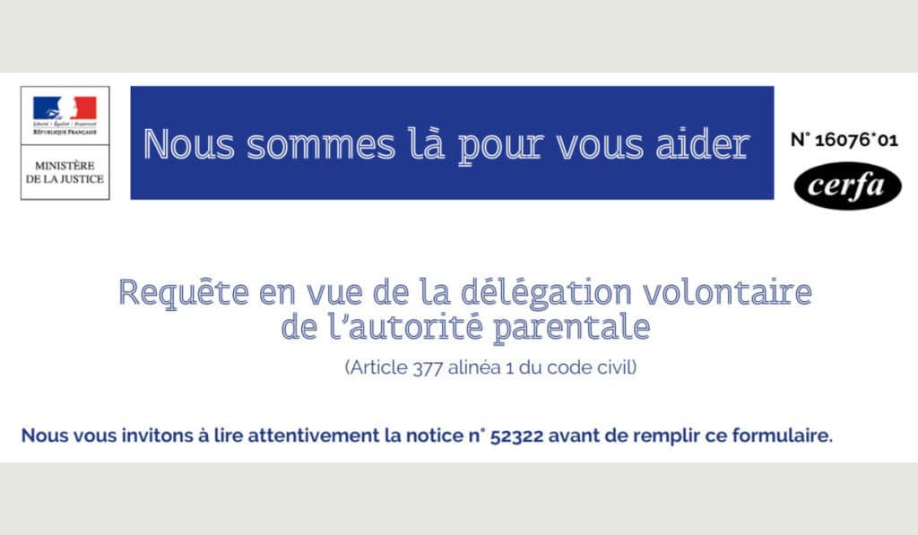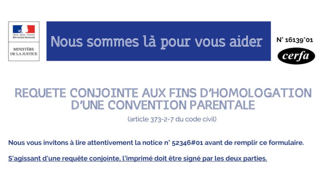 Le formulaire Cerfa 15992*02 est utilisé pour une demande de délivrance du titre exécutoire (décision de justice) d’une convention parentale. Il faut obligatoirement joindre la …