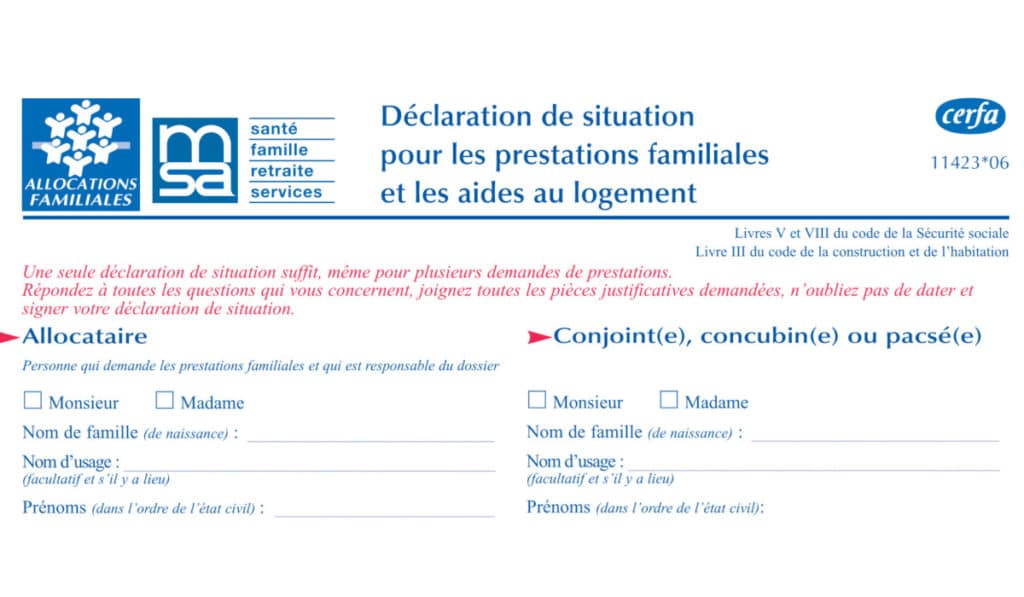 Dernières versions des formulaires Cerfa de la Caisse d’Allocations familiales (Caf) ou la mutuelle sociale agricole (MSA) ainsi que les notices explicatives associées à télécharger gratuitement et prêts à être imprimés