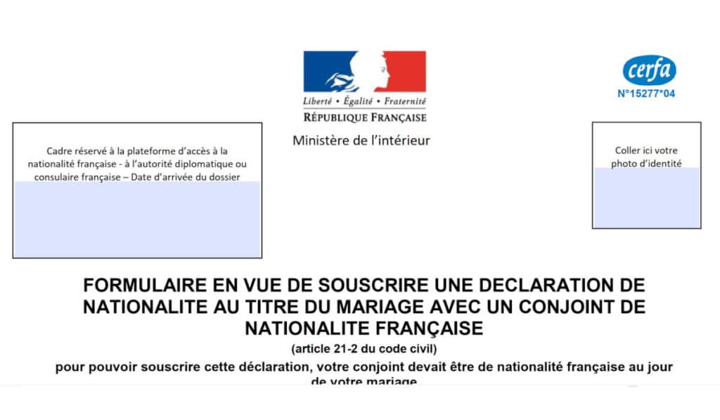 Le formulaire CERFA 15277*04 est utilisé pour demander la nationalité française en raison du mariage avec un(e) Français(e). Une fois complété et signé, il est …