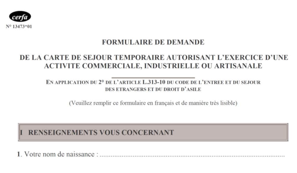 Le formulaire Cerfa 13473*01 est utilisé pour une demande de carte de séjour temporaire pour autoriser l’exercice en France d’une activité commerciale, industrielle ou artisanale …